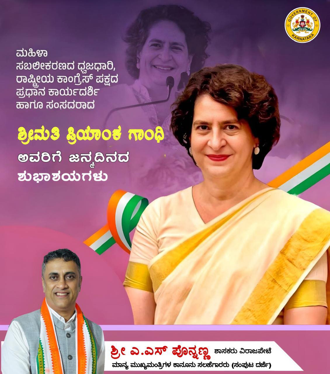 Flag bearer of Women Empowerment, National Congress Party General Secretary and MP Happy birthday to Mrs. Priyanka Gandhi, 12/01/2026