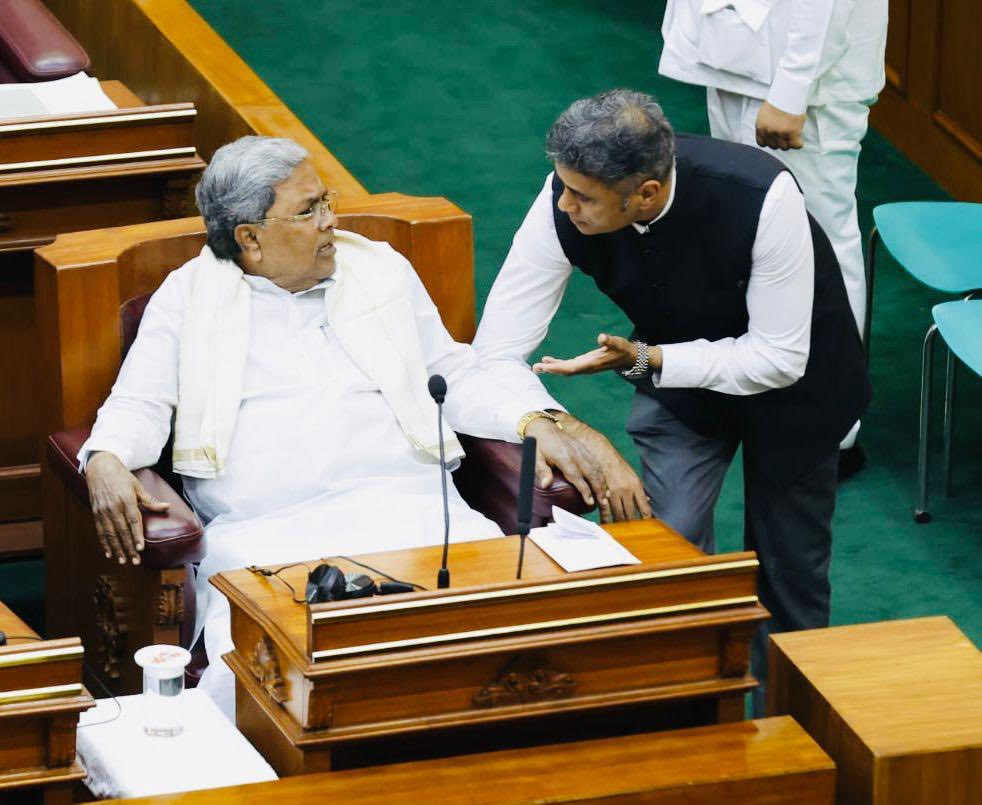 ಬೆಳಗಾವಿಯ ಸುವರ್ಣ ಸೌಧದಲ್ಲಿ ನಡೆಯುತ್ತಿರುವ ಚಳಿಗಾಲದ ಅಧಿವೇಶನ - 2025 ರಲ್ಲಿ, ಮಾನ್ಯ ಮುಖ್ಯಮಂತ್ರಿಗಳಾದ ಶ್ರೀ ಸಿದ್ದರಾಮಯ್ಯ ಅವರು ಹಾಗೂ ಮಾನ್ಯ ಸಚಿವರುಗಳಾದ ಶ್ರೀ ಪ್ರಿಯಾಂಕ್ ಖರ್ಗೆ ಅವರು, ಶ್ರೀ ಬೈರತಿ ಸುರೇಶ್ ಅವರೊಂದಿಗೆ ವಿವಿಧ ವಿಷಯಗಳ ಬಗ್ಗೆ ಚರ್ಚಿಸಿಸುತ್ತಿರುವ ಸಂದರ್ಭ.