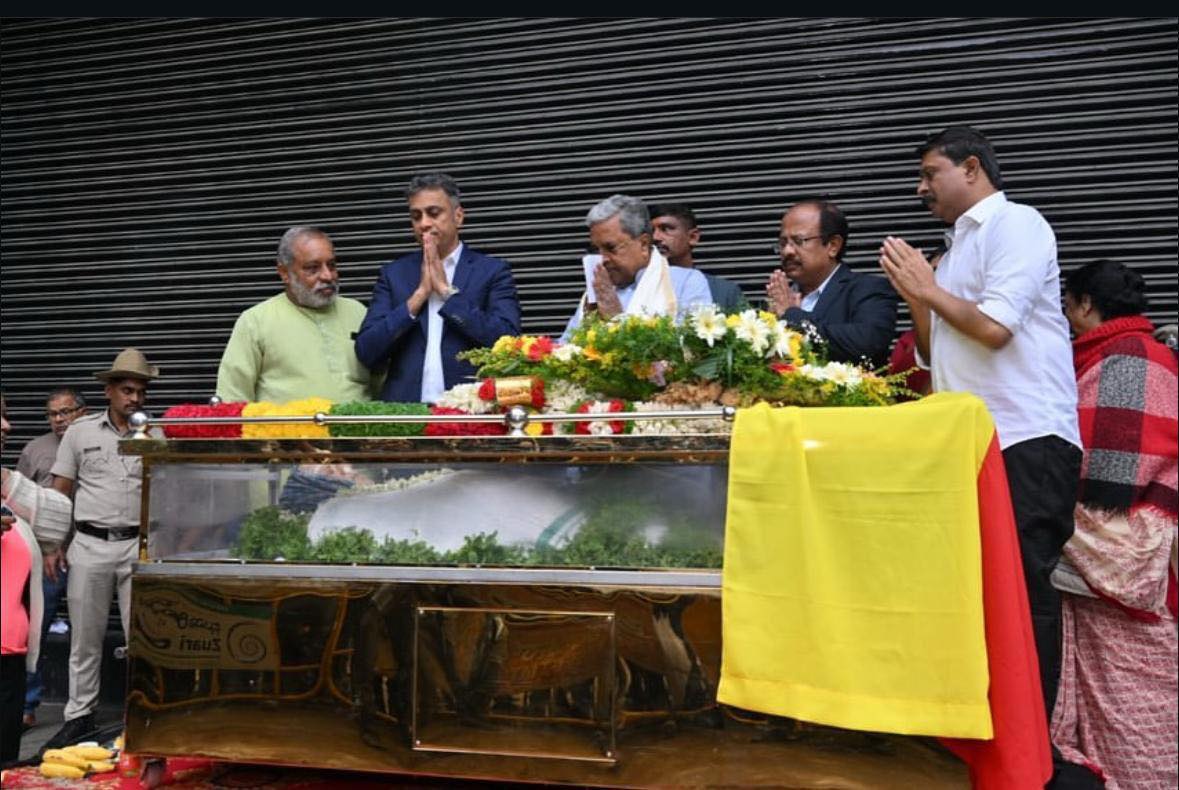 Today, took the final darshan of the dead body of senior theatre and film artist Umesh, along with Hon'ble Chief Minister Sri Siddaramaiah at the premises of Ravindra Kalakshetra, seeking eternal peace to his divine soul and condolences to the family of t, 01/12/2025