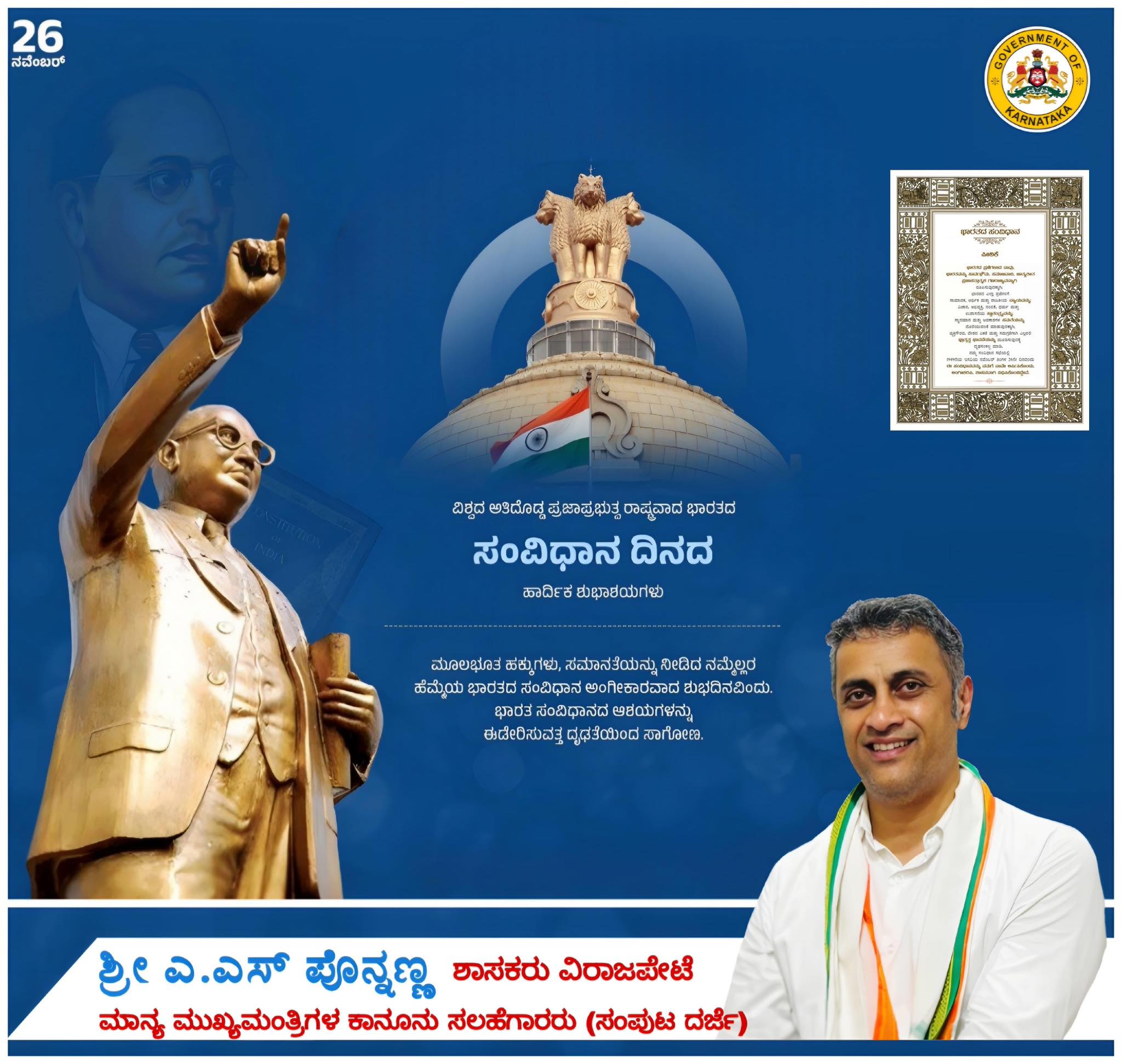 ವಿಶ್ವದ ಅತಿದೊಡ್ಡ ಪ್ರಜಾಪ್ರಭುತ್ವ ರಾಷ್ಟ್ರವಾದ ಭಾರತದ ಸಂವಿಧಾನ ದಿನದ ಹಾರ್ದಿಕ ಶುಭಾಶಯಗಳು.