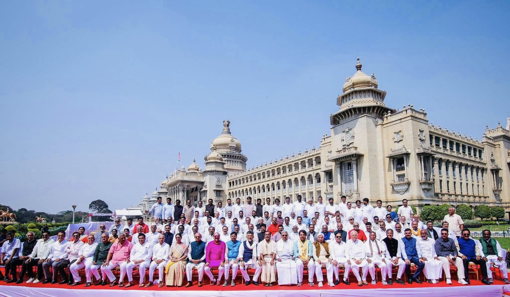 Participated in a memorable group portrait with Hon'ble Chief Minister Shri Siddaramaiah and Hon'ble Deputy Chief Minister Shri D.K Shivakumar, Hon'ble Chairman and all respected members of 16th Legislative Assembly in front of Shakti Kendra Vidhanasoudha, 25/03/2026