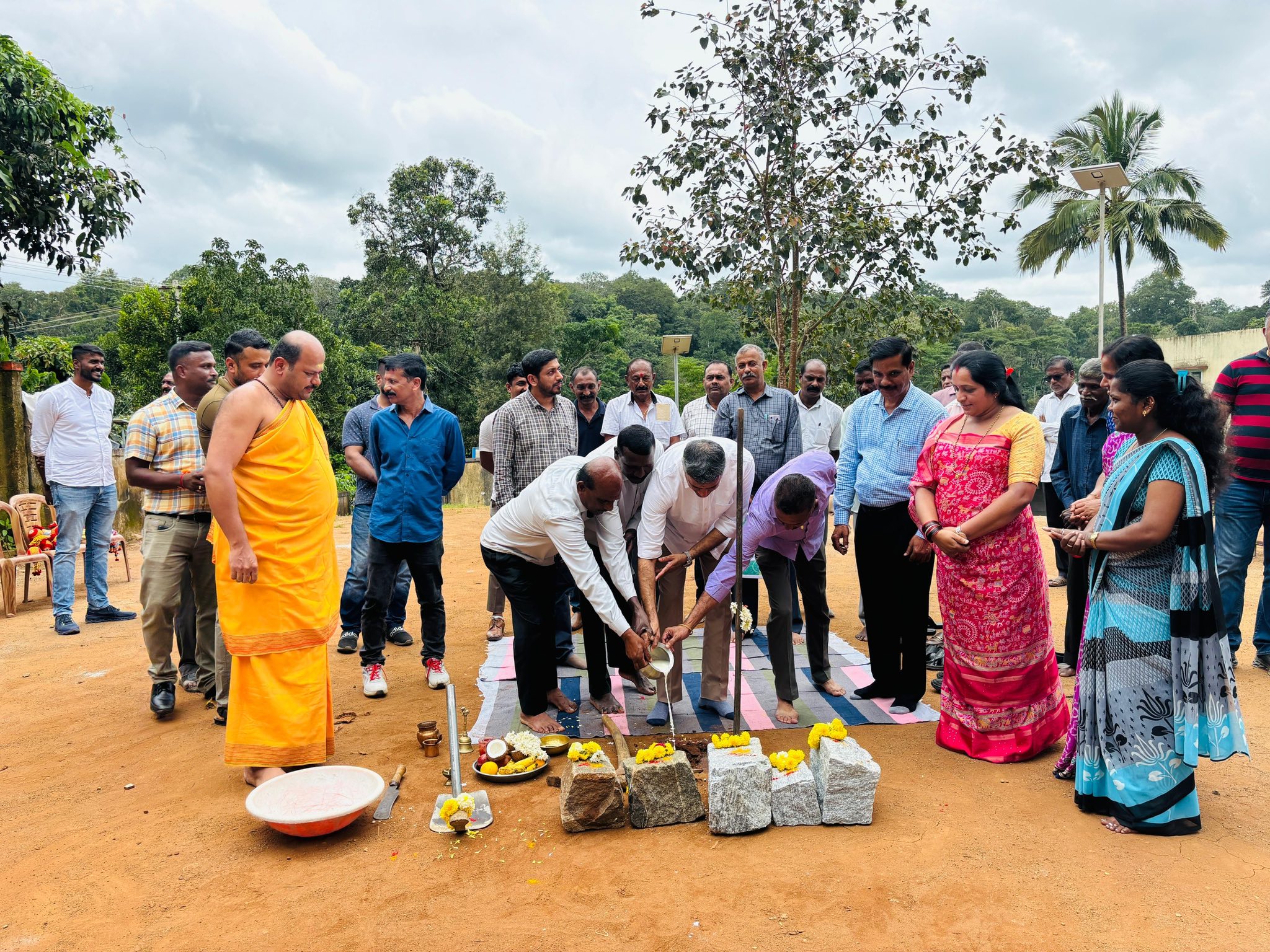 Land pooja was conducted for newly constructed library and residential house construction work at Bommadu Ashram School in Nalkeri village, Ponnampete taluk., 25/08/2025