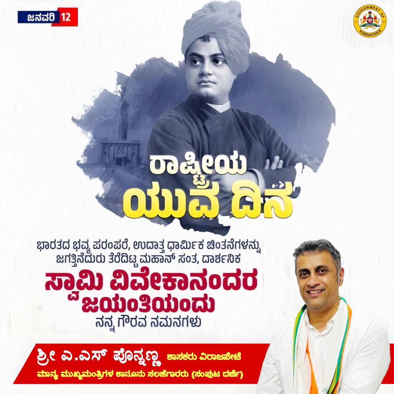 ಭಾರತದ ಭವ್ಯ ಪರಂಪರೆ, ಉದಾತ್ತ ಧಾರ್ಮಿಕ ಚಿಂತನೆಗಳನ್ನು ಜಗತ್ತಿನೆದುರು ತೆರೆದಿಟ್ಟ ಮಹಾನ್ ಸಂತ, ದಾರ್ಶನಿಕ ಸ್ವಾಮಿ ವಿವೇಕಾನಂದರ ಜಯಂತಿಯಂದು ನನ್ನ ಗೌರವ ನಮನಗಳು.