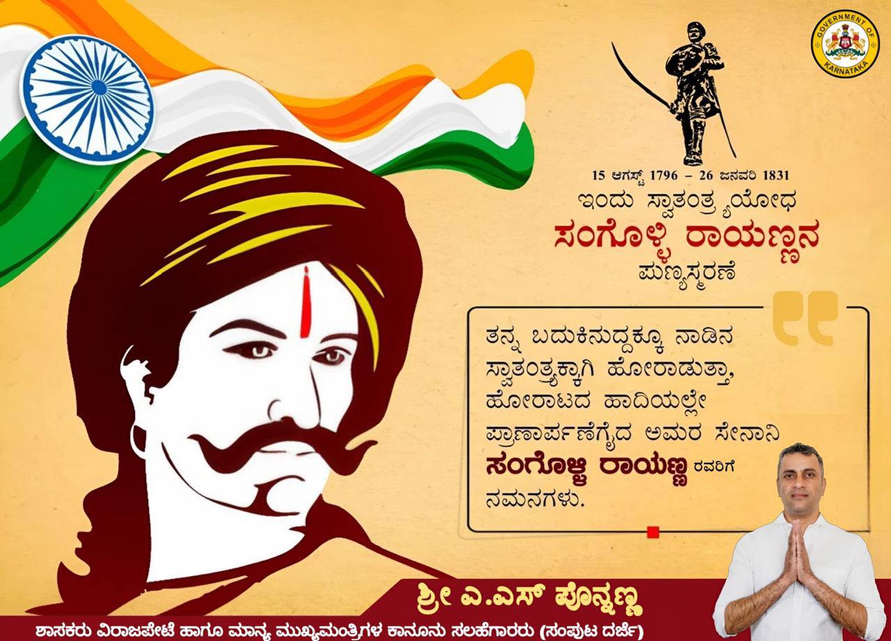 Salute to the immortal fighter Sangolli Rayanna who sacrificed his life on the path of struggle while fighting for the independence of the state, 26/01/2026