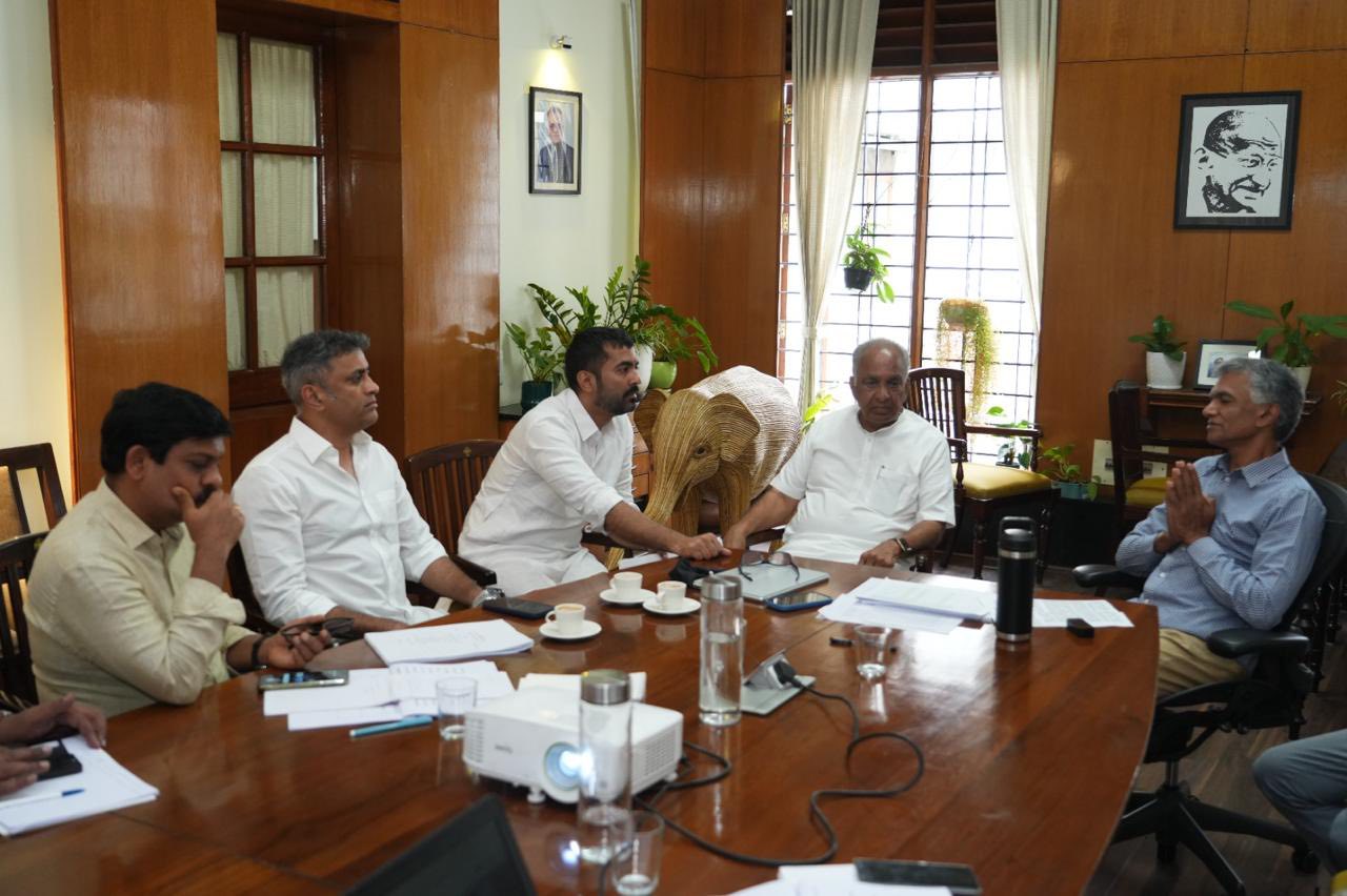 District In-charge Minister Shri N.S. Bhosaraju and Madikeri Constituency MLA Dr. Manthar Gowda met with District Guarantee Implementation Committee President Shri Dharmaja Uttappa and Revenue Minister Shri Krishna Byre Gowda to discuss the ongoing farmer, 05/11/2025