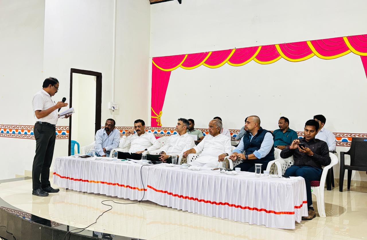 While participating in the progress review meeting of Virajpet and Ponnampet Taluk-level officers held at Ambedkar Bhavan, Virajpet, discussions were conducted on the implementation of ongoing development projects, review of departmental progress, and mea, 05/11/2025