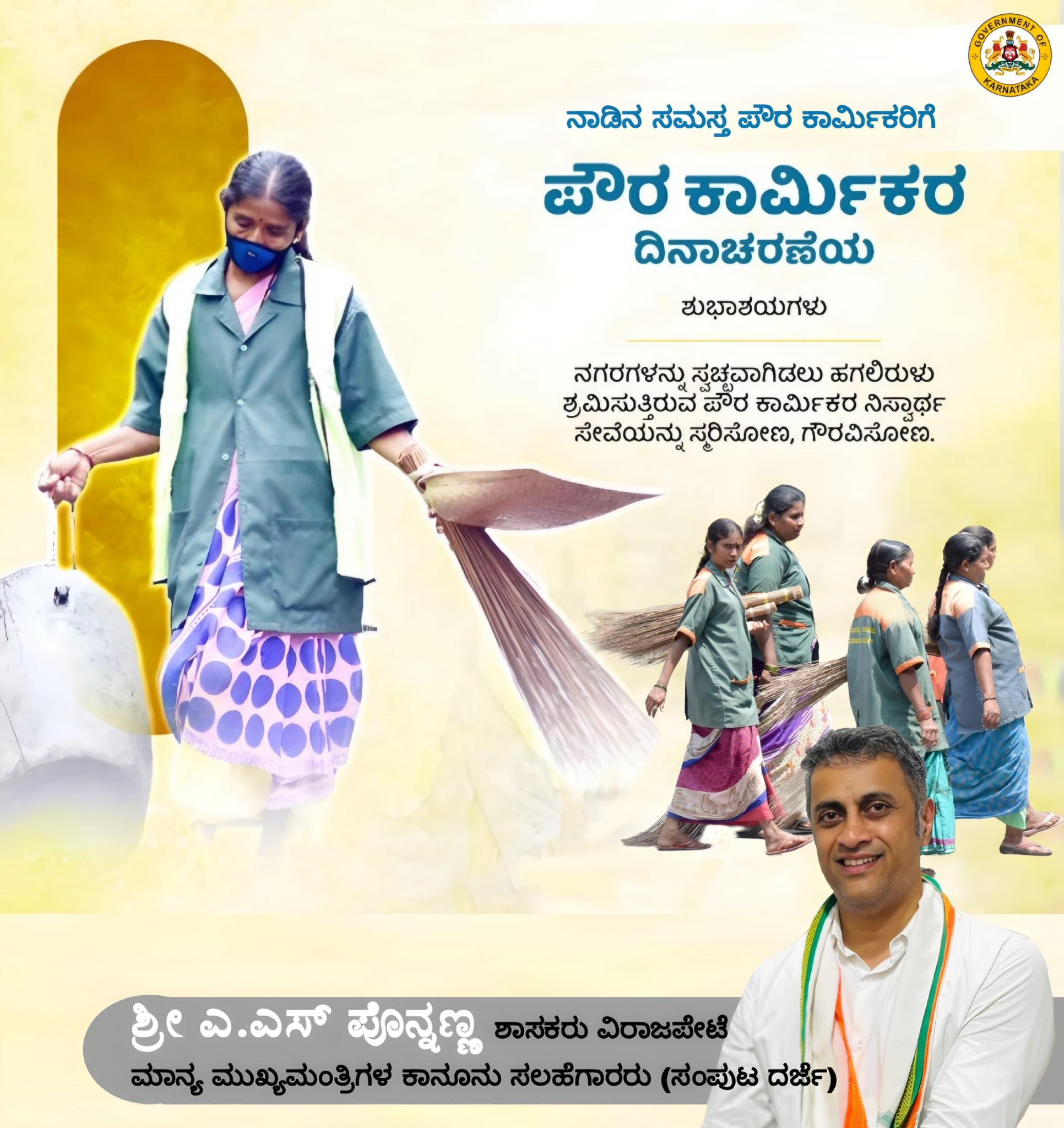 ನಾಡಿನ ಸಮಸ್ತ ಪೌರ ಕಾರ್ಮಿಕರಿಗೆ ಪೌರ ಕಾರ್ಮಿಕರ ದಿನಾಚರಣೆಯ ಶುಭಾಶಯಗಳು.